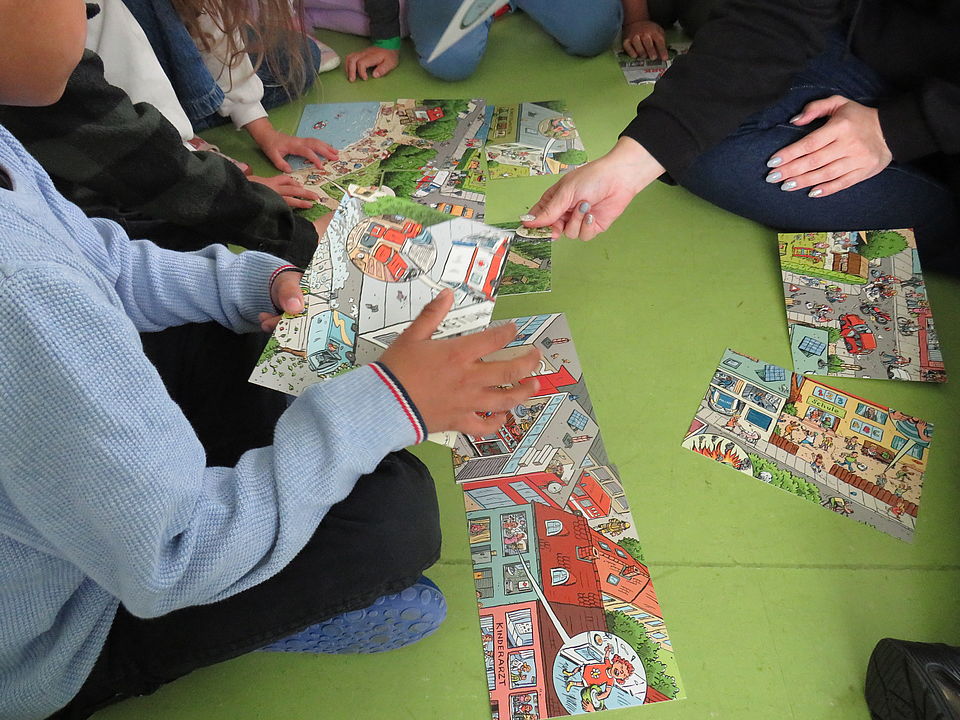 Mit großem Eifer lernten die Kinder, wie man in Notfällen hilft und welche Rettungsdienste es gibt. Notrufnummern, Verbände und gemeinsames Puzzeln – spielerisch viel Wissen gesammelt.
