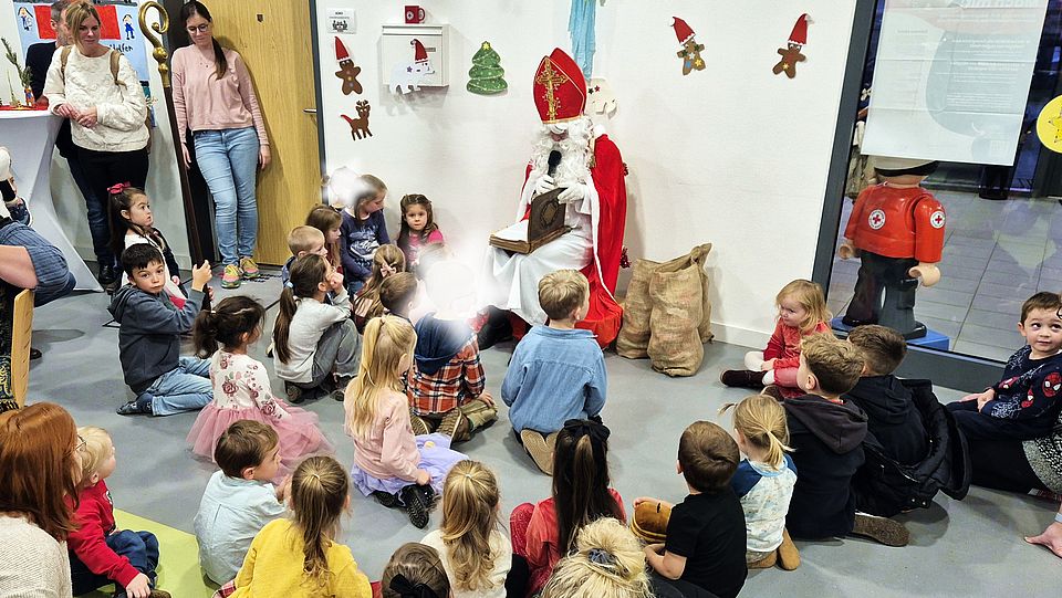 Ein weiterer Höhepunkt der Vorweihnachtszeit war der Besuch des Nikolaus. Bei einer warmen, familiären Feier empfing er die Kinder, las ihnen vor und freute sich über die selbstgebastelten kleinen Geschenke. Natürlich hatte er auch für jedes Kind eine liebevolle Überraschung dabei. Für Genussmomente sorgte ein süßes Buffet – mit frisch gebackenen Waffeln, liebevoll zubereitet vom Elternbeirat und engagierten Müttern.