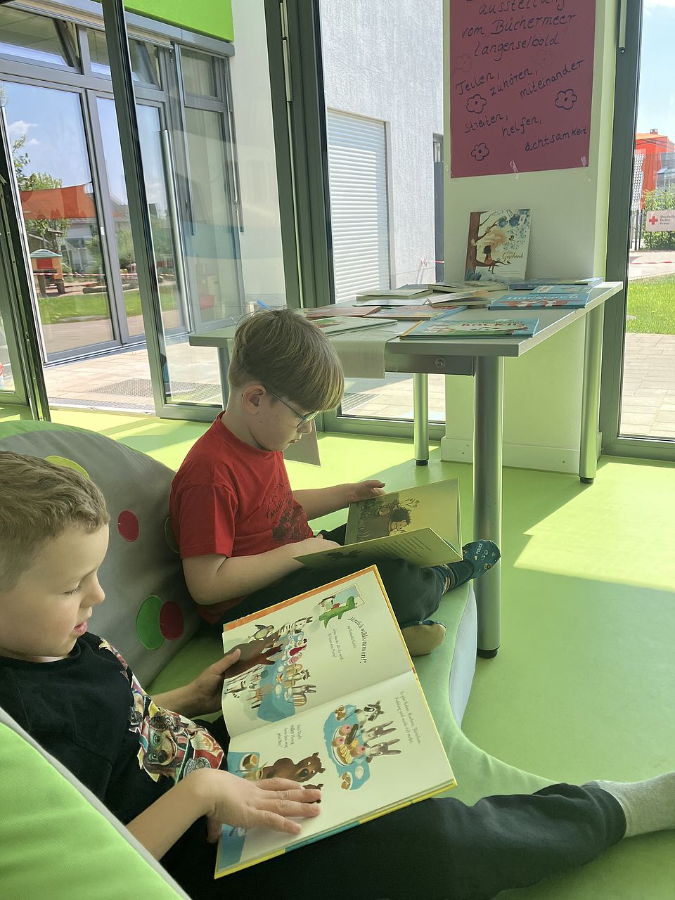 Pünktlich zu Ostern wurde unsere KiTa „Kunterbunt“ in Langenselbold zur kleinen Lesewelt. Gemeinsam mit der ortsansässigen Buchhandlung Büchermeer haben wir eine liebevoll zusammengestellte Buchausstellung organisiert. Ein großes Dankeschön an Buchhändlerin Bärbel Tárai, die uns mit einer tollen Auswahl an Kinderbüchern versorgt hat.